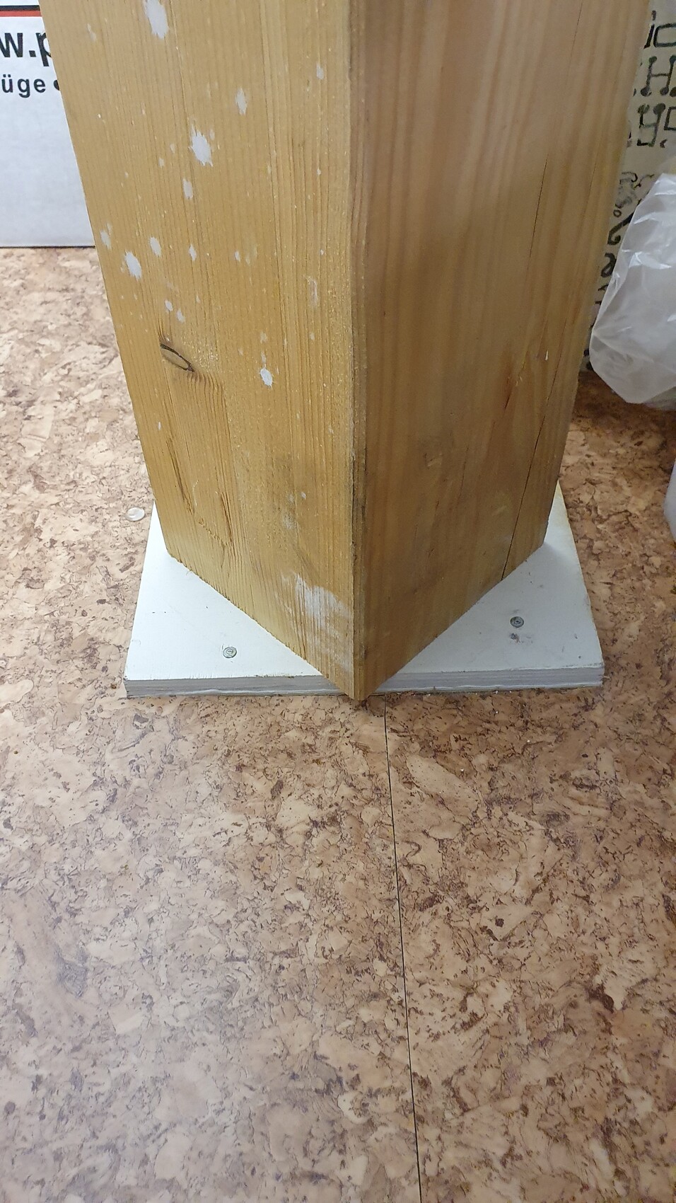 Die beiden Hauptpfosten sind auf einem Holzstück montiert? Wieso? Hat dazu jemand eine Theorie? Dem Eigentümer wollte ich keine "unangenehmen Fragen" stellen, da es sehr viele Kaufinteressenten gibt.