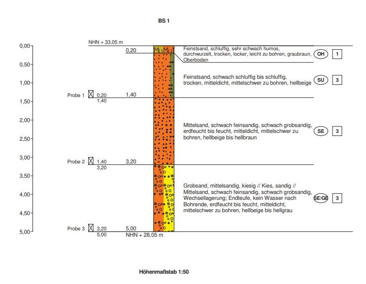Einen Ausschnitt des Bodengutachtens füge ich bei. Ich würde natürlich die 30cm Mutterboden abtragen. Frage ist ob der vorhandene Sand als untere Tragschicht unterm Recycling ausreichend ist?