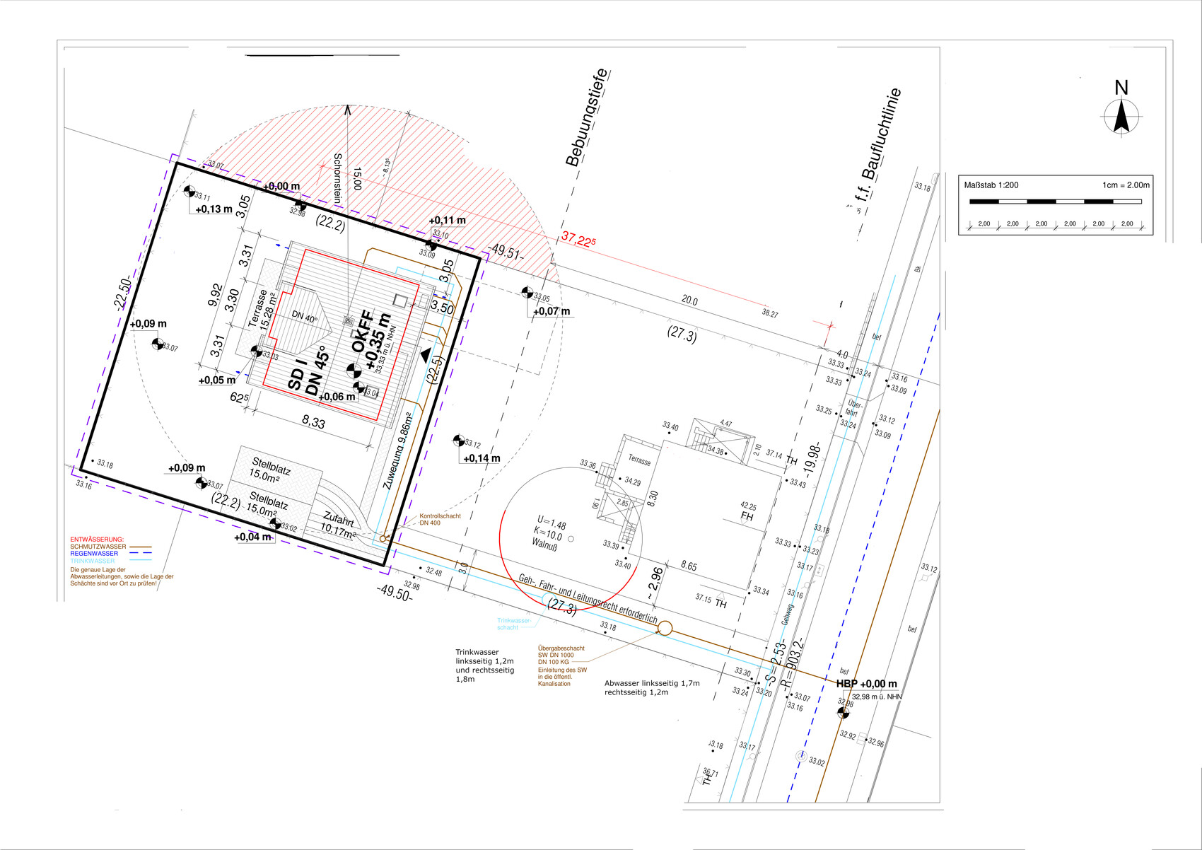 Der Trinkwasserschacht wäre egal, da ich für den Anschluss hier auch Leerrohre verlegen kann.