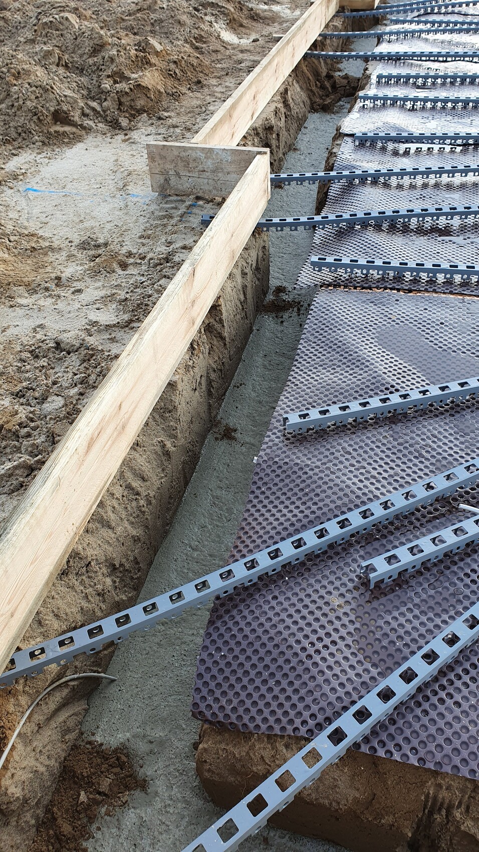 Aber die Betonmischer konnten nun auf das Grundstück fahren und so konnten 2 Autos abkippen sodass wenigstens das Fundament zu 90% gegossen werden konnte.