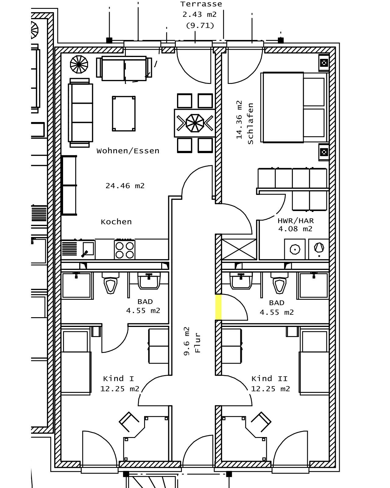 Zum Regelgrundriss (es sind mehrere Wohnungen gleichen Grundrisses geplant)