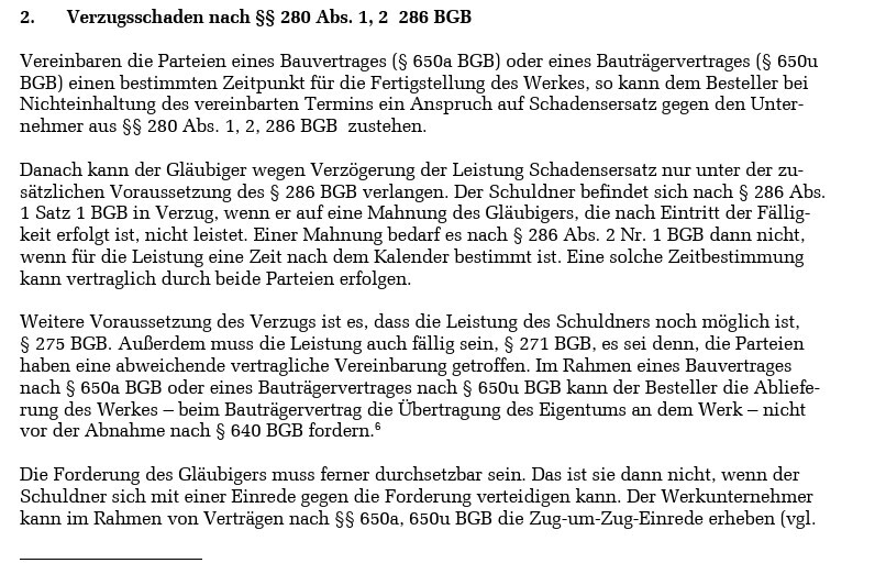 Baugesetzbuch 280 iVm 286 regelt den Anspruch auf Schadenersatz für diesen Fall (es ist keine Mahnung nötig)