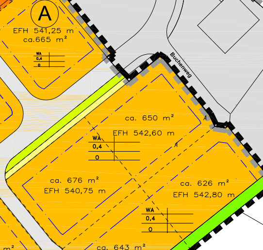 Da muss ich mal nachfragen was da jetzt gilt.Leider ist das nicht der endgültige Rechtsplan und auch die textlichen Festsetzungen sind nirgends zu finden. Aber gehen wir einfach mal davon aus, dass sich nach der Offenlage des Bebauungsplan nichts mehr geändert hat.