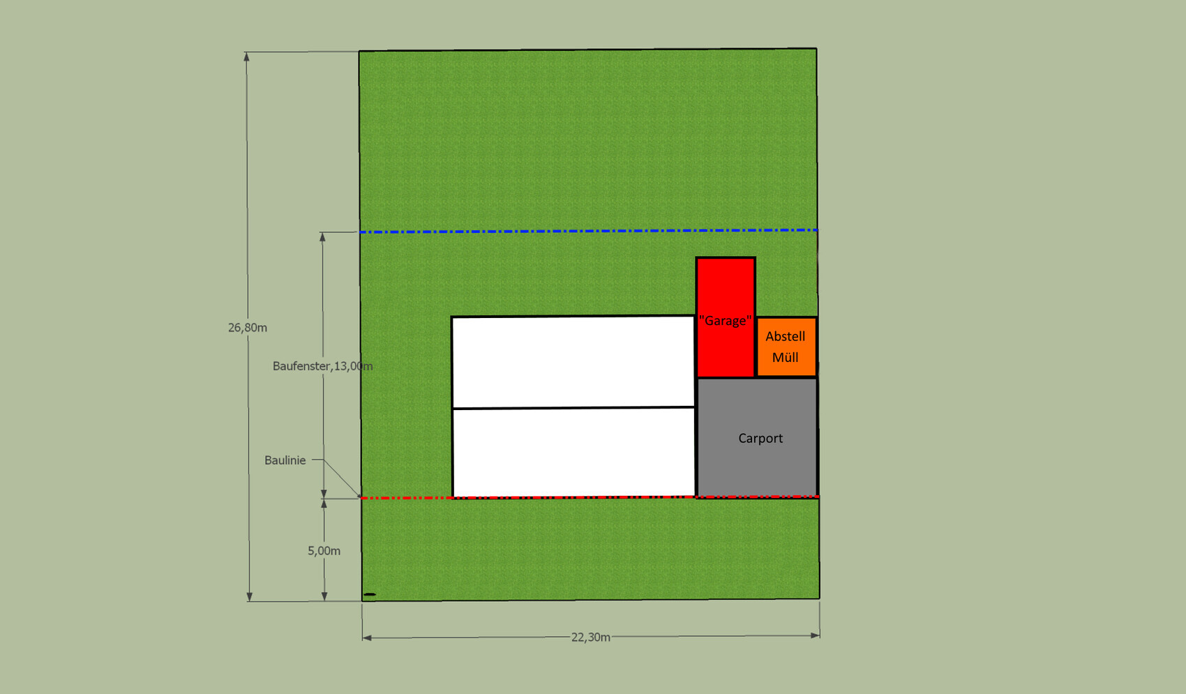 Im Verhältnis zu den Problemen die andere hier haben sicherlich ein Luxus-Problem. Trotzdem hat ja vielleicht jemand noch die ein oder andere Idee wie man das klug anordnen kann. (Oder findet in dem Bebauungsplan noch ein Schlupfloch das ich übersehe)