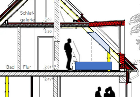 Zum Schlafzimmer noch Bedenken wegen dem Dachflächenfenster. Das ist nicht nur für die Photovoltaikanlage ungünstig, sondern auch in 3 m höhe.