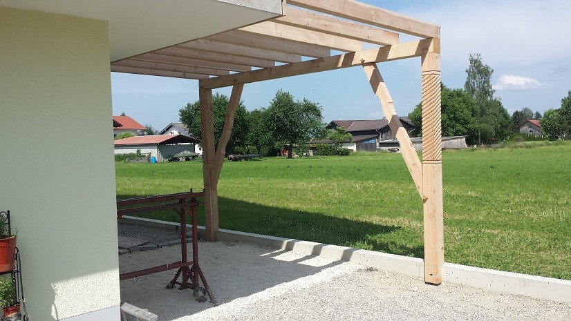 Der Platz unter dem Anbau soll regengeschützt sein.