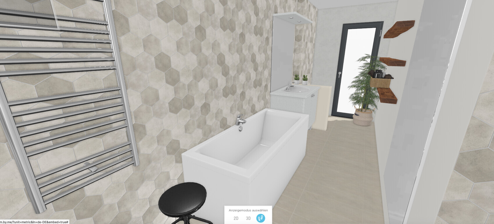 Mit welchem Programm erstellst du diese Bilder? Sieht toll aus und ist eine große Hilfe. Die Badseite wird nur bis ca. 1,20 gefliest und die speziellen Bodenfliesen sind bestimmt nicht drin, aber ansonsten ist das schon ziemlich nah dran. Sehr gut 🙂