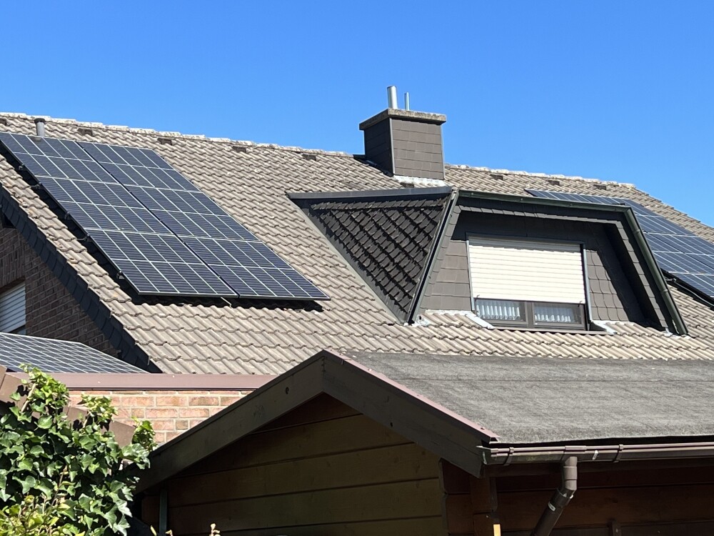 marienschatten14.08.22 07:28Ich habe ein Hausdach mit 32° Neigung, auf das 12 Solarmodule montiert werden sollen. Auf dem Foto 1 sieht man das Dach. Rechts und links vom Schonstein sollen je 6 Module in je zwei Reihen montiert werden. Auf dem zweiten Foto sieht man das Dach meines Nachbarn. So soll die Anordnung auch bei mir werden.