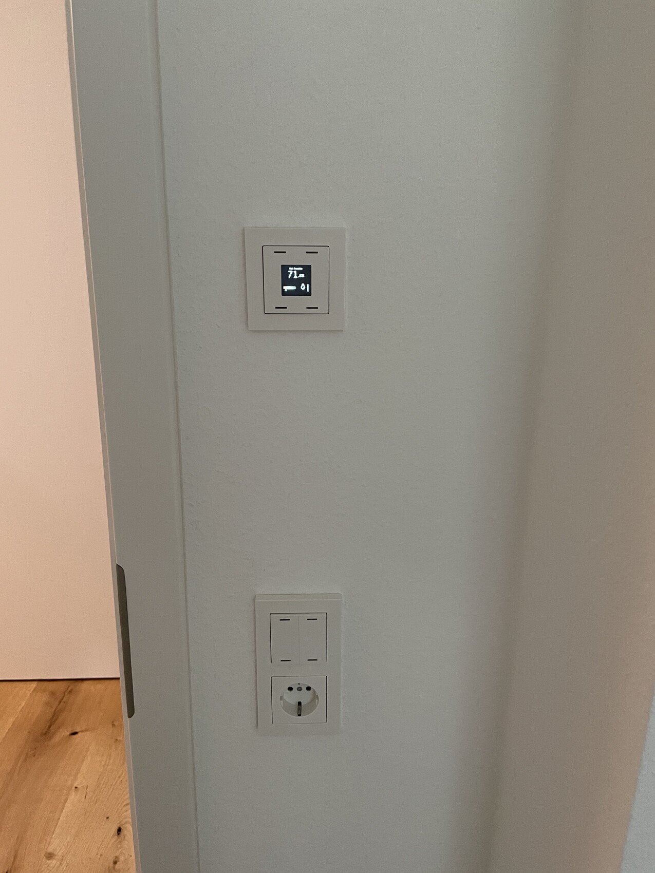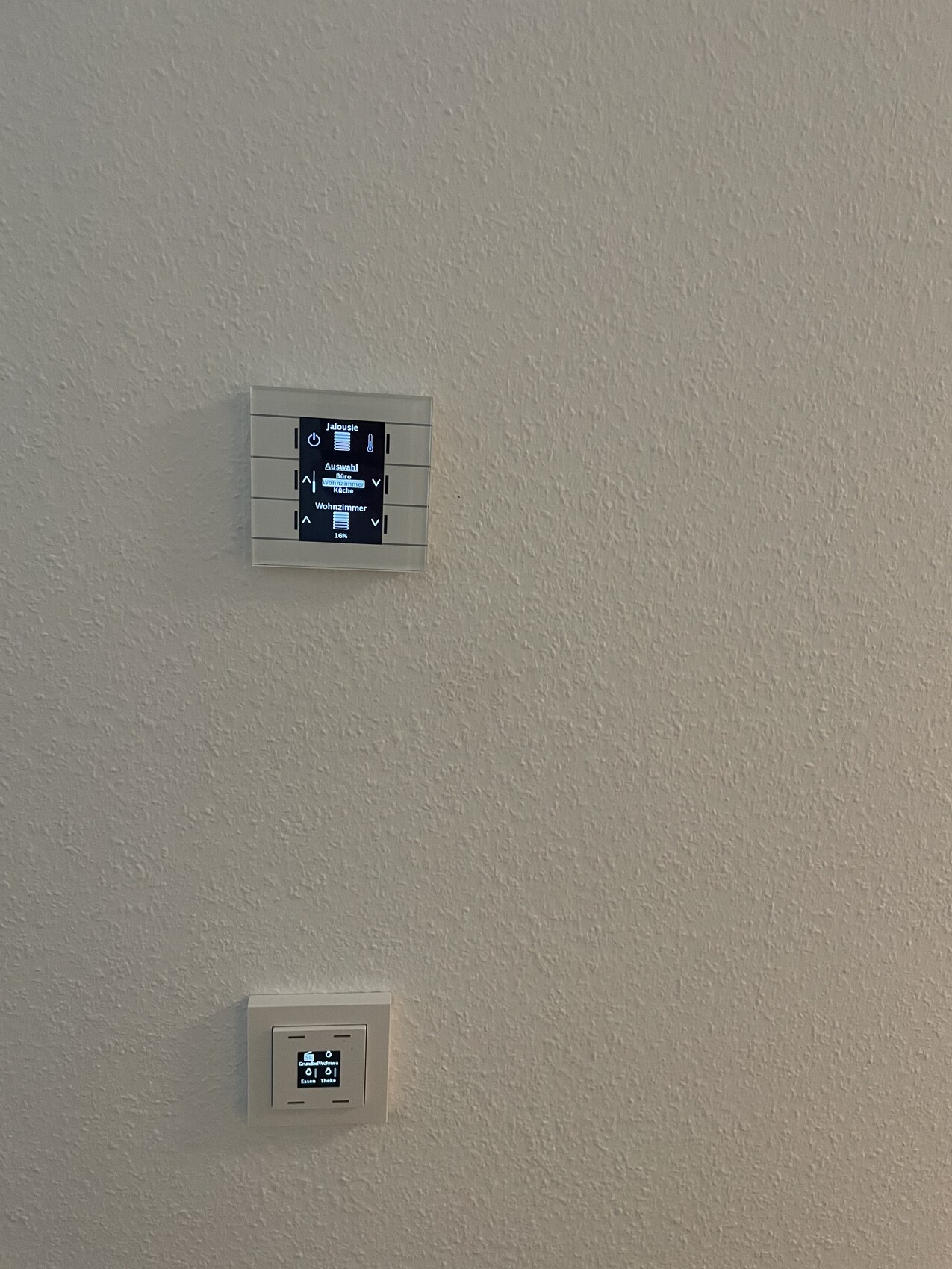 Mäuseklavier an der Wand? Selbst in einer Wohnung konnten wir KNX umrüsten. Verwendet wurden fast nur Geräte von MDT. Taster an der Wand mit 3 fach Klick funktion ermöglicht mir theoretisch jedes Licht zu schalten. Aber eigentlich wird vieles eigenständig oder über Szenen realisiert. Ich hatte 0 Kenntnisse von KNX habe nur paar Videos angeschaut aber es ist wirklich Selbsterklärend. Im Wohnzimmer habe ich zum Eingang eine Bedienzentrale und einen Taster, im Wohnzimmer selbst insgesamt 2 Taster Rest über den Steinel True Presence oder per Strommessung am Herd. Die Zimmer haben einen Doppelschalter und einen mit Display. Im Bad geht die Badbeleuchtung und Duschbeleuchtung mittels zwei Präsenzmelder aus.