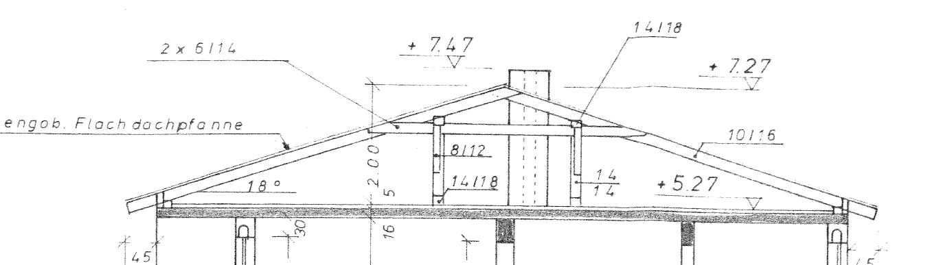 jetzt hat mich der tatsächliche Aufbau der obersten Geschossdecke interessiert. Ich habe jetzt nochmal im damaligen Eingabeplan zum Hausschnitt nachgesehen.