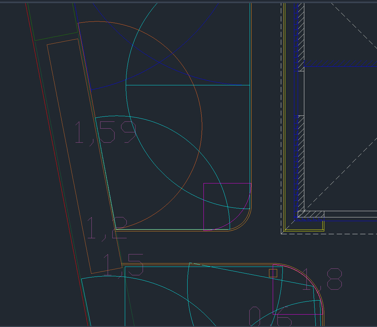 Ein Problem habe ich jetzt allerdings noch bei einer Innenecke mit dem Radius von 1m. Der MP800SR hat als kleinstmöglichen Radius 1,8m und kann auf minimal 90° eingestellt werden. So würde das dann bei mir aussehen: