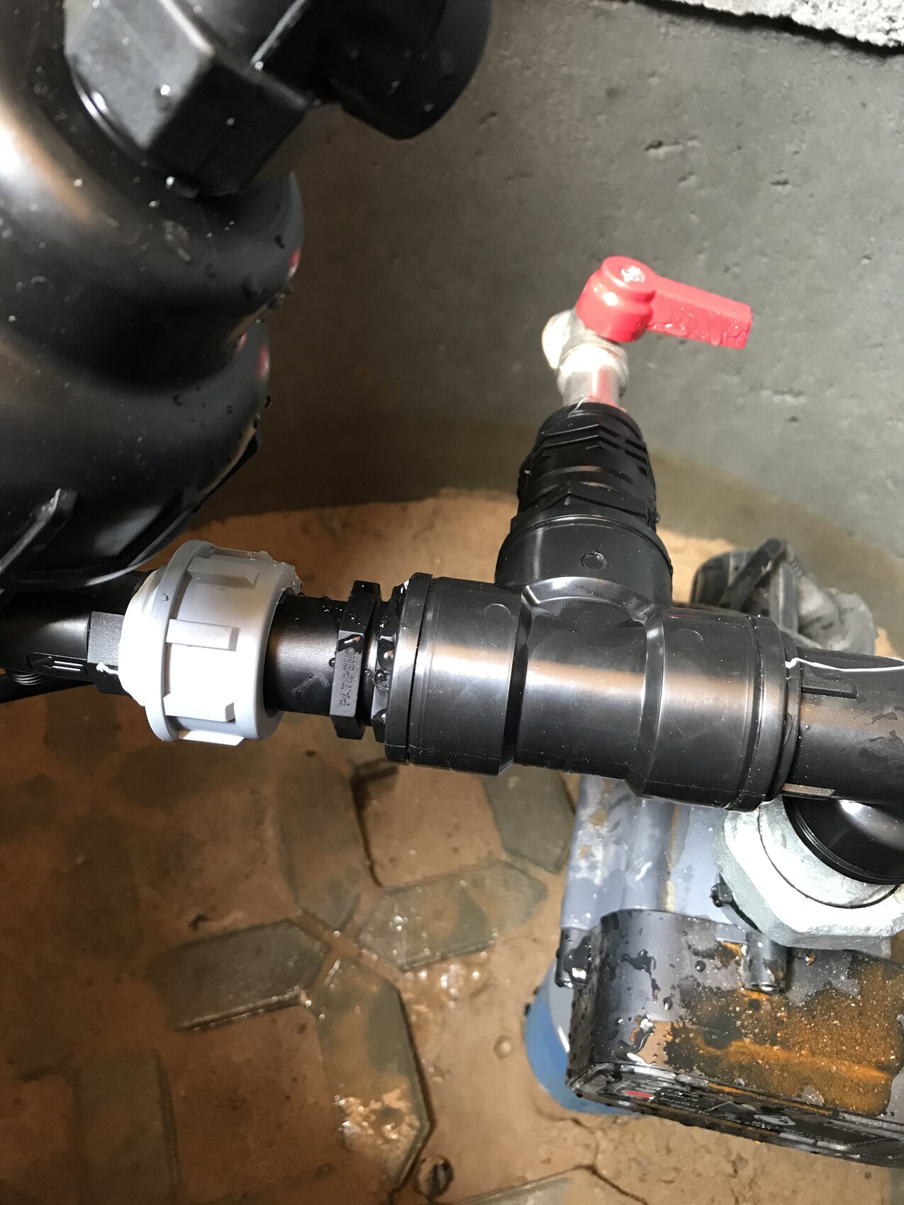 Also mittlerweile habe ich 3 von 4 Ventilboxen, alle 3 Wasserdosen und einen Tropferkreis verbaut und bin gerade beim ersten Regnerkreis. Nachdem ich ja die Undichtigkeit direkt beim Pumpenabgang hatte, hatte ich befürchtet, dass ich bei den Ventilboxen auch alles noch mal neu abdichten muss. Aber offenbar hatte ich da mehr Teflon benutzt, oder aber die Teile dichten doch mehr ab. Es war bis auf eine Stelle alles dicht.