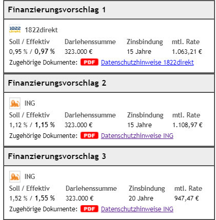 Ich mag die Kombination aus Sicherheit bei der NRW.Bank und niedrigem Zins. Der Nachteil bei der NRW.Bank ist, dass wir keine Möglichkeit zur Sondertilgung haben. Aber gut nach 10 Jahren werden die Karten sowieso neu gemischt.
