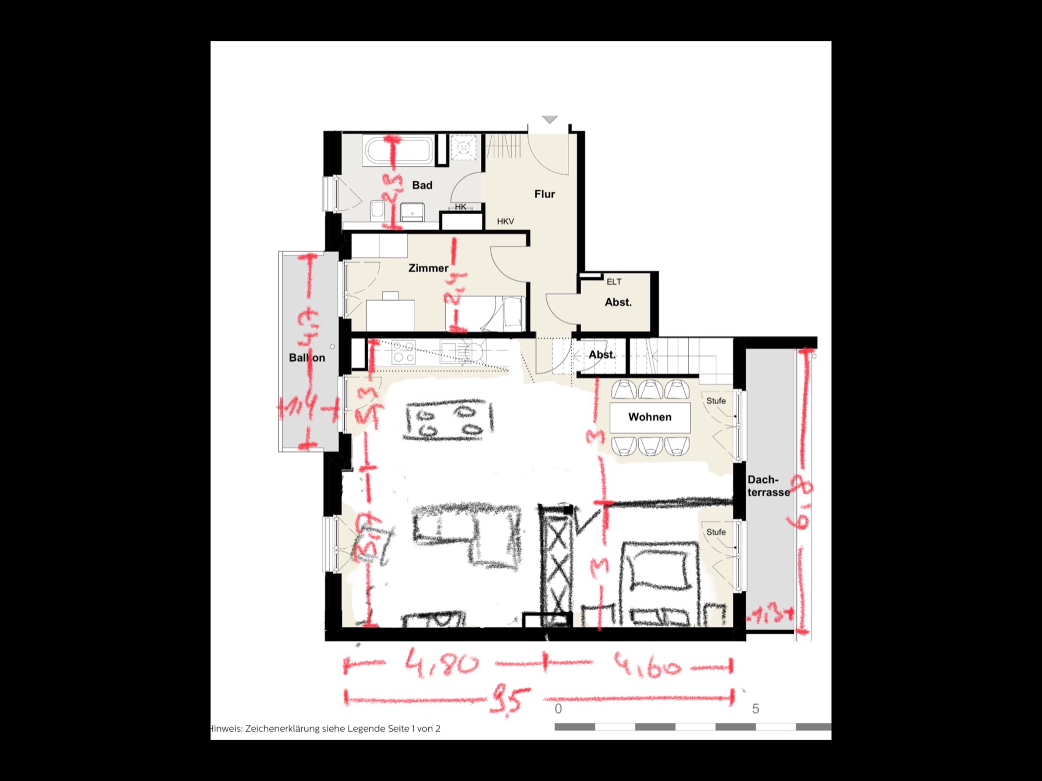 Das wird aber nicht gehen, weil die Wand zwischen Küche und Zimmer tragend eingezeichnet ist.Da weißt Du mehr als ich Im Ernst: ich bin wahrlich kein ungeübter Grundrisseleser, normalerweise auch in Wohnanlagen nicht, aber hier erkenne ich nicht so recht "genau", was da tragend sein soll. Irgendwelche Wände oder Stützen müssen es wohl sein, das sagt einem allein die Spannweite - aber sie geben sich mir hier nicht deutlich zu erkennen.