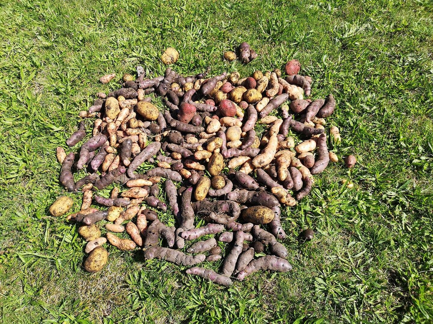 Quinoa essen wir dagegen nur 2 bis 3 mal im Jahr, weil es halt von weit her kommt und die Nährstoffe bekomm ich auch wo anders her. Reis gibts nur alle 1 bis 2 Wochen. Kartoffeln gibts 1 bis 2 mal pro Woche. Leider sind die vom letzten Jahr aus dem eigenen Garten schon weg. Derzeit haben wir welche von meinem Vater, der nen Bauern kennt, der die im Mittelgroßen Stil selbst anbaut. Wir hatten 20 kg Ernte aus unserem Garten. Alles schöne, alte und bunte Sorten (Siehe Foto).