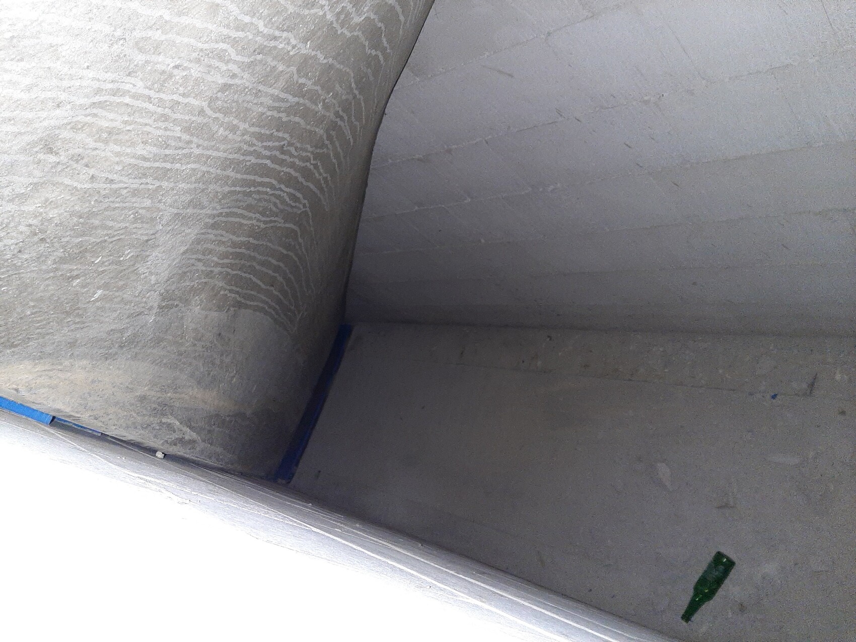 Die Flasche wurde vermutlich vor dem Mauern einfach liegengelassen, beim Hineinwerfen wäre sie zerbrochen .