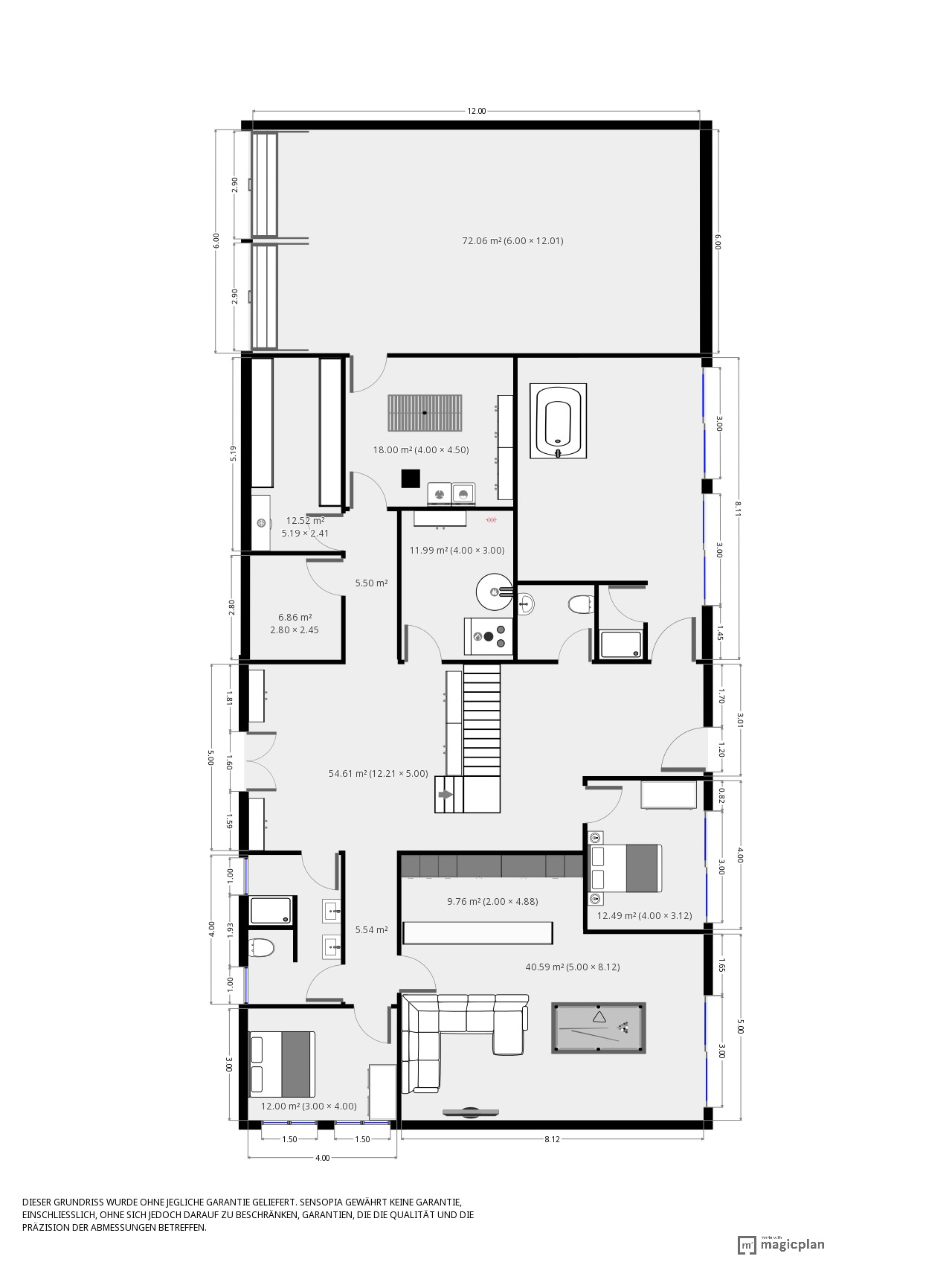 Fehlt da ne Tür zu den Schlafräumen?Ja, das lässt das Magicplan nicht zu- eine nachträglich eingezeichnete Wand kann weder eine Tür, noch etwas anderes "wandgebundenes" bekommen. Türen sind auf beiden Seiten der Treppe.kaho674 schrieb: