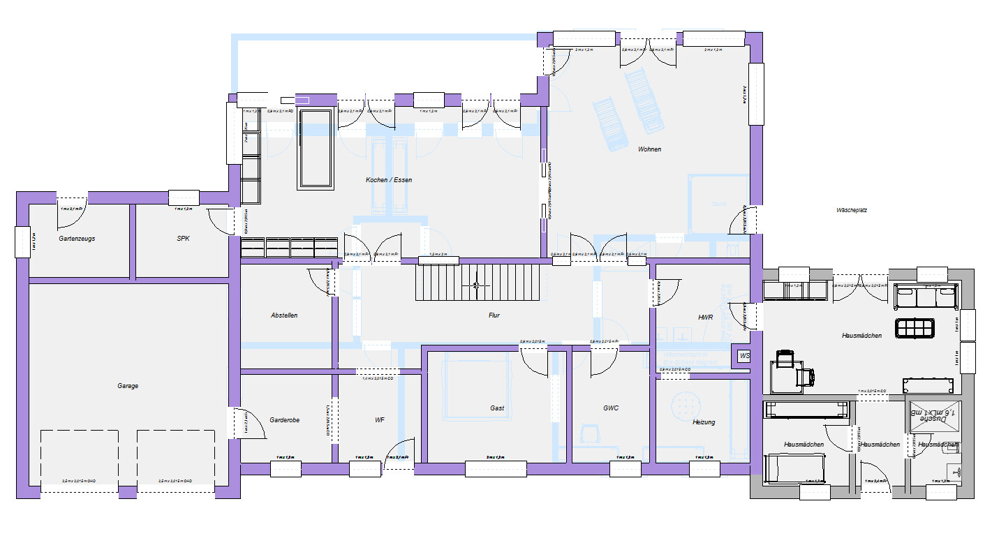 Aber klein??? Wohn/Eß/Kochbereich hat 80qm, Speisekammer ca. 8,5qm, Einliegerwohnung ca. 80qm. Ich hatte eher das Gefühl zu groß zu dimensionieren...