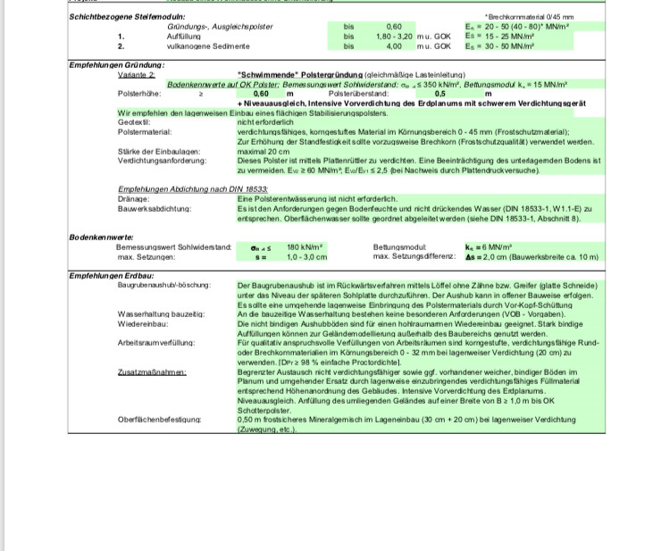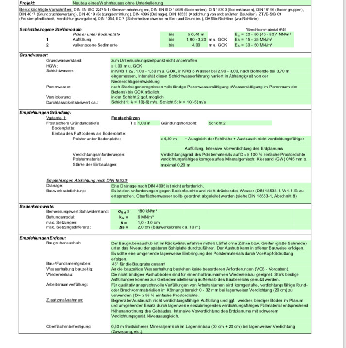 wir bauen mit Danwood ein Einfamilienhaus in der Eifel. Eben haben wir per Mail vorab das Bodengutachten bekommen und ehrlich gesagt verstehe ich nur Bahnhof. Bin vom Beruf her eher auf rechtliche Themen spezialisiert Thema Hausbau ist jedenfalls noch völliges Neuland für mich. Vlt kann jemand von Euch einen Blick auf das beigefügte Gutachten werfen und mir mit wenigen Worten beschreiben, was mich/uns da erwartet. Wäre super lieb.