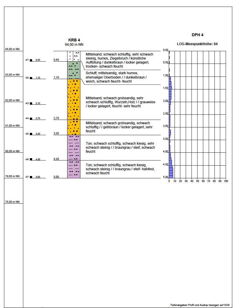 Die Rammsondierungen zeigen für die Auffüllung je nach Zusammensetzung eine lockere