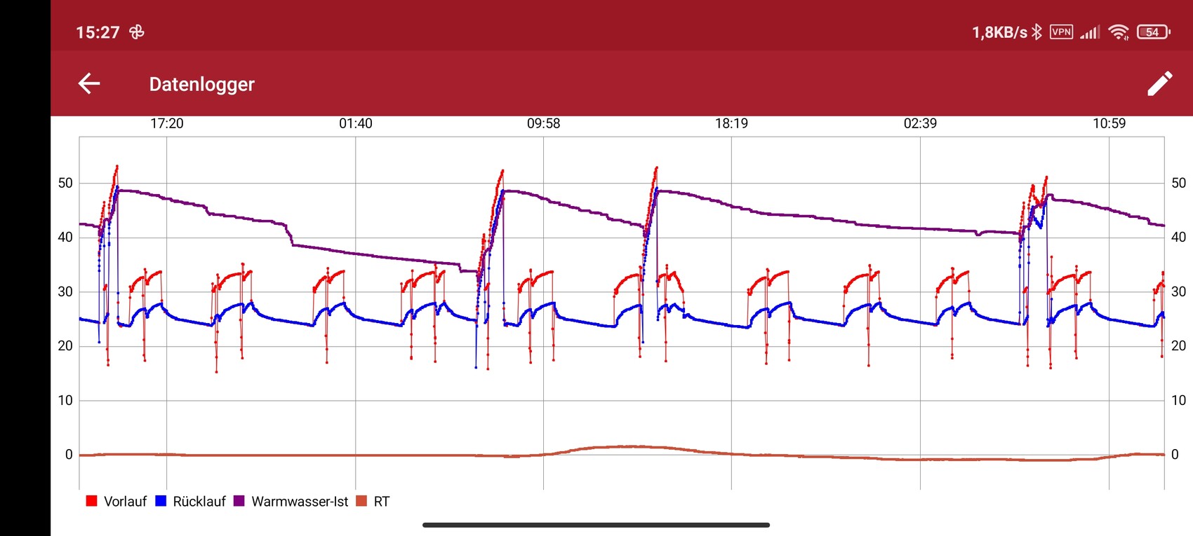 Zirkulation aus machen dann hat man immer warm Wasser. Ww auf 48 Grad und 6k Hysterese