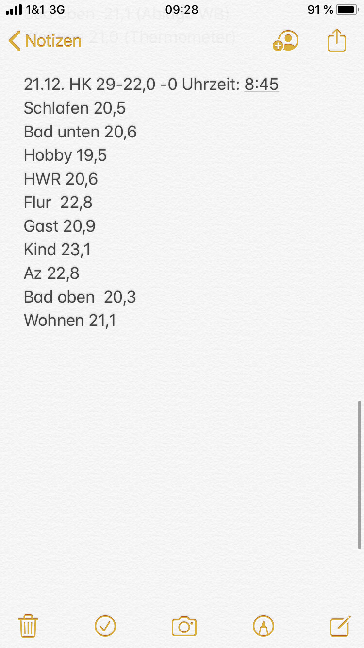 Erstaunlich sind die hohen Flur Temperaturen trotz einer hohen Spreizung und geringen Fluss. Vielleicht braucht der Estrich noch ein bis zwei Tage um sich neu zu temperieren. Ich würde jetzt erst mal bis morgen abwarten. Hauptbad sehe ich weiter kritisch, das ist mit der Fußbodenheizung anscheinend unterversorgt. Da werdet ihr bei Bedarf zuheizen müssen.