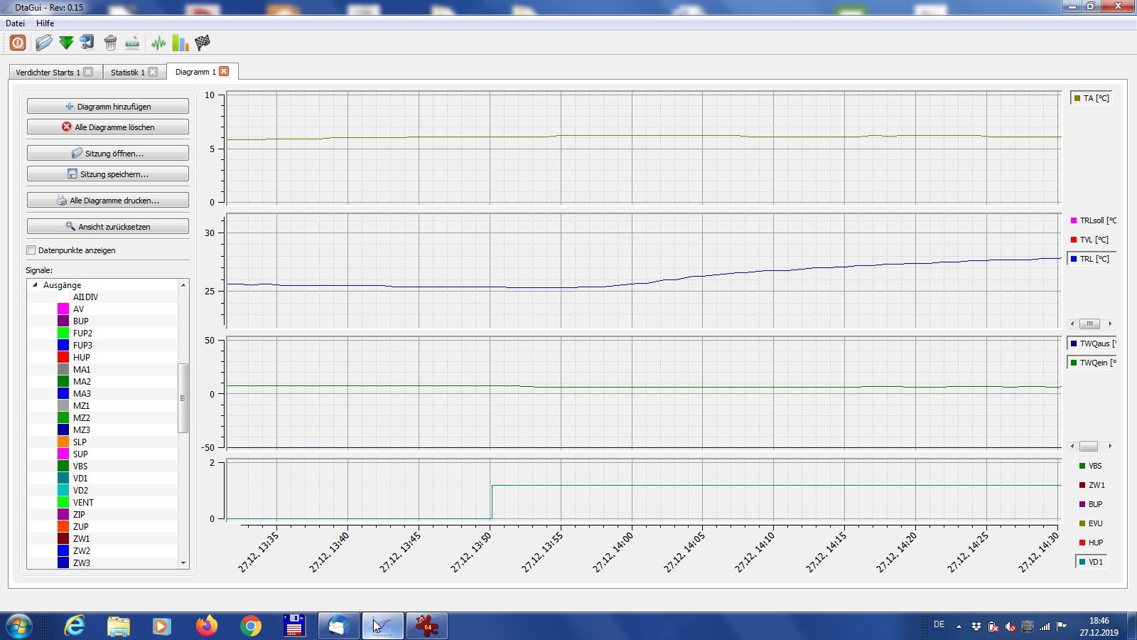 TATA, die Rücklauftemperatur steigt jetzt erst nach ca. 6 Minuten an. Bedeutet es kommt mehr Wärme im Estrich an. Die Wärmepumpe wird jetzt effizienter arbeiten. Die Heizkurve muß angepaßt werden, Ich würde es zunächst mit 27-22-0 versuchen. Sonst wird es viel zu warm im Haus