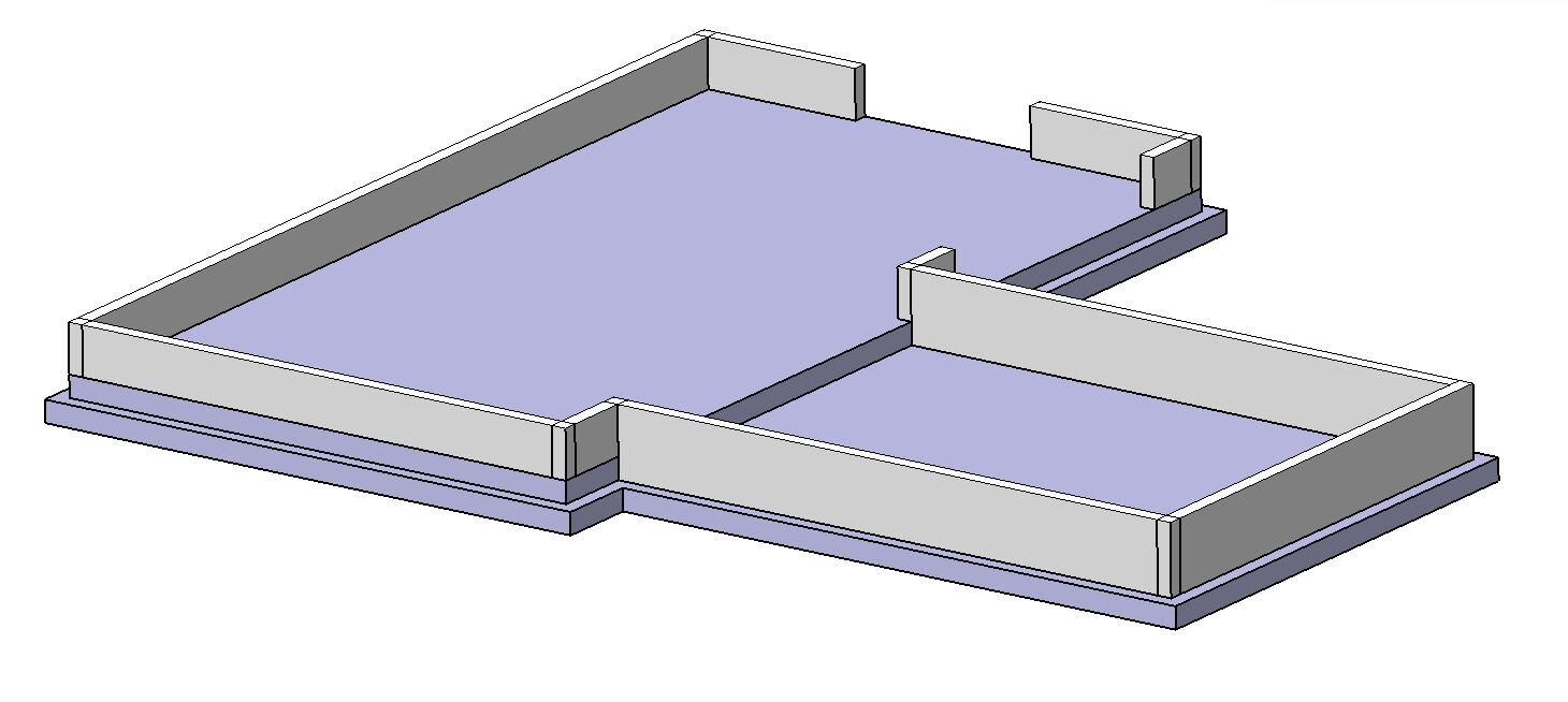 landhausbauer03.06.19 18:36Vielen Dank für die Hilfe und die detaillierten Einblicke! Natürlich soll/muss am Ende ein Architekt/Statiker drüber schauen, jedoch hoffe ich, dass meine Entwürfe die nötige Reife haben, um nachträglich große Änderungen zu vermeiden. Als Ergänzung unten ein Modell der Bodenplatte wie ich mir sie momentan vorstelle. Zu sehen ist, dass die Bodenplatte nur im inneren Bereich des Haupthauses erhöht ist. Außerdem sind die Ziegel der Außenwand angedeutet. Für die Kompletierung zum dreischaligen Mauerwerk (so ist es momentan geplant) sollen Dämmung und Klinker auf den niedrigeren Absatz (gleiche Höhe wie Garage) gesetzt werden. D.h. für Dämmung und Klinker gibt es keinen Absatz und umlaufend um das Haus die gleiche Höhe -> keine optischen Probleme. Problematisch sehe ich, dass der Absatz der Bodenplatte exakt die gleiche Höhe wie ein Ziegel haben muss.
