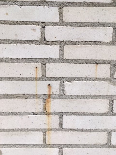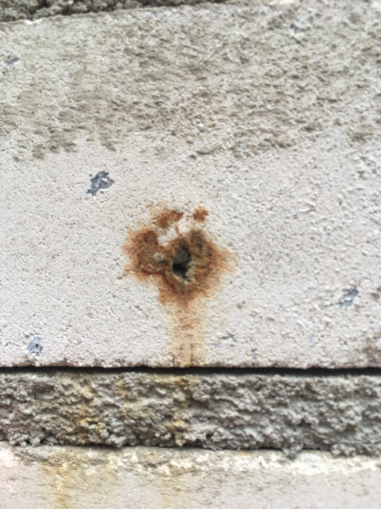 Und woher kommt der? Von innen? Ist das eine Art ausblühung und wenn ja warum? Das sind keine Schraubenlöcher o.ä. Die Mauer wurde aufgestellt und steht dort nun seit 3 Monaten.