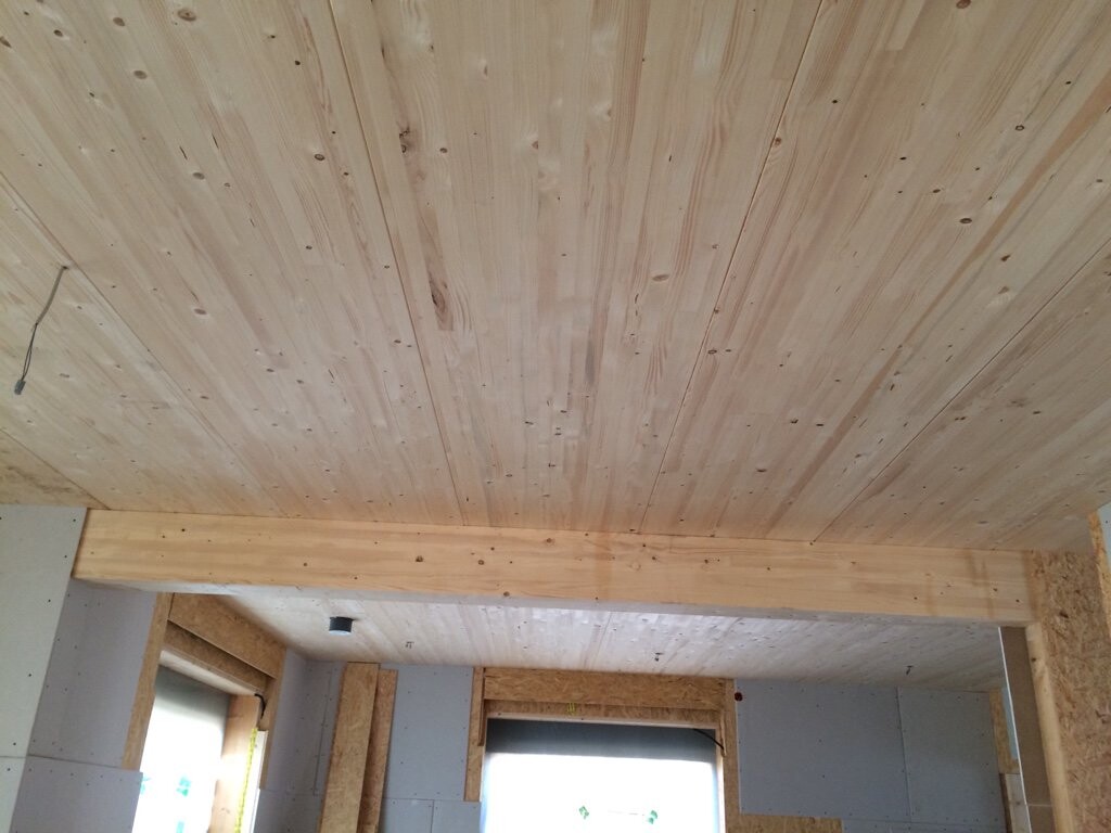 Hier ein Bild von unserer zukünftigen Decke, die haben wir nicht sichtbar bestellt und auf Grund der trotzdem guten Qualität nachträglich entschieden diese erst mal sichtbar zu lassen.