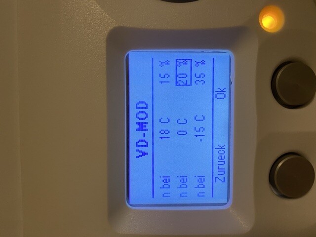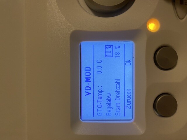 Ok. Das Erste (VD-MOD) müsste die Verdichterdrehzahl sein. Diese und die Lüfterdrehzahl habe ich bereits herabgesetzt. Die Primärpumpe kann ich aber nicht direkt herabsetzen. Da kann ich nur den Minwert einstellen.