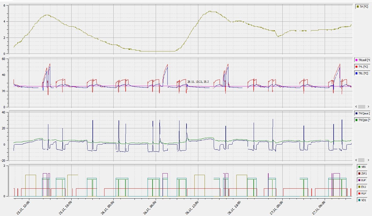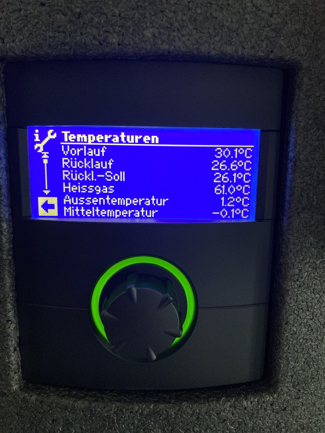 bin jetzt seit 14 Stunden durchgehend am Heizen. Die Fußbodenheizung-Rücklauftemperatur beträgt 30C.