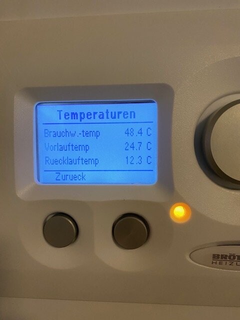 Das sind die Anzeigen unter der Hydrobox? Da hat aber der Vorlauf über 30° und der Rücklauf unter 30°......... Genau umgekehrt. Wäre auch plausibel.hat das Auswirkungen auf die Regelung?