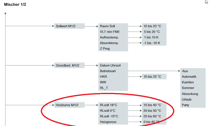 Entweder du stellst den Mischer voll auf indem du die Mischkreisheizkurve hoch drehst, dann gibt die Heizkurve der Wärmepumpe die Haustemperatur vor. Oder du machst es wie im anderem Forum vorgeschlagen, dann gibt die Mischkreisheizkurve die Haustemperatur vor.