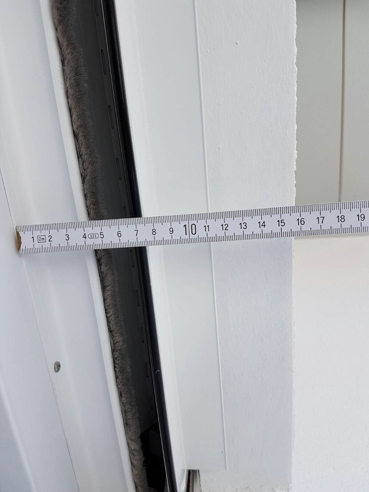 grenzen. Der Spalt ist viel zu groß. Die Blechleiste muss ausgetauscht werden. Ist ja kein Problem. Einfach eine breitere. Dann grenzt die Bürstendichtung fast an den Rollladen".