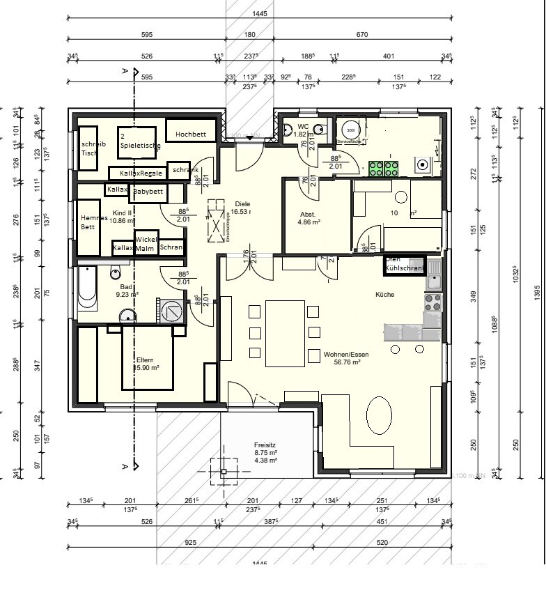 Einziger Wehrmutstropfen: die Küche ist etwas knapp, aber da lässt sich durch Fenster verschieben eventuell noch etwas rauskitzeln.