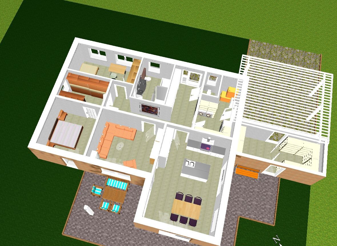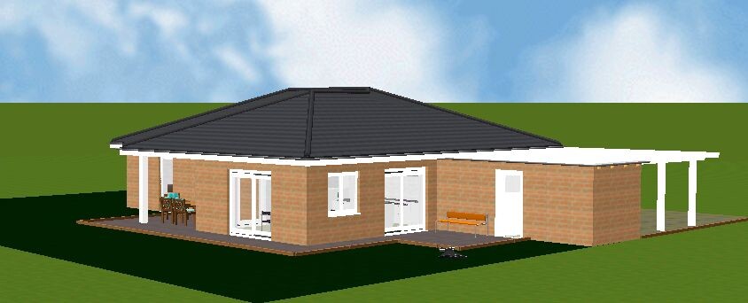 Aber, . ich spiele ja gerne mit Grundrissen. Daher habe ich auch schon mal ein bisschen geschoben. Dabei habe ich mir um den Ausbau DG zunächst keine Gedanken gemacht, sondern ein recht flaches Walmdach gesetzt, wo eh oben kein echter Wohnraum entstehen kann. Wohnfläche ebenfalls ca. 127 qm.