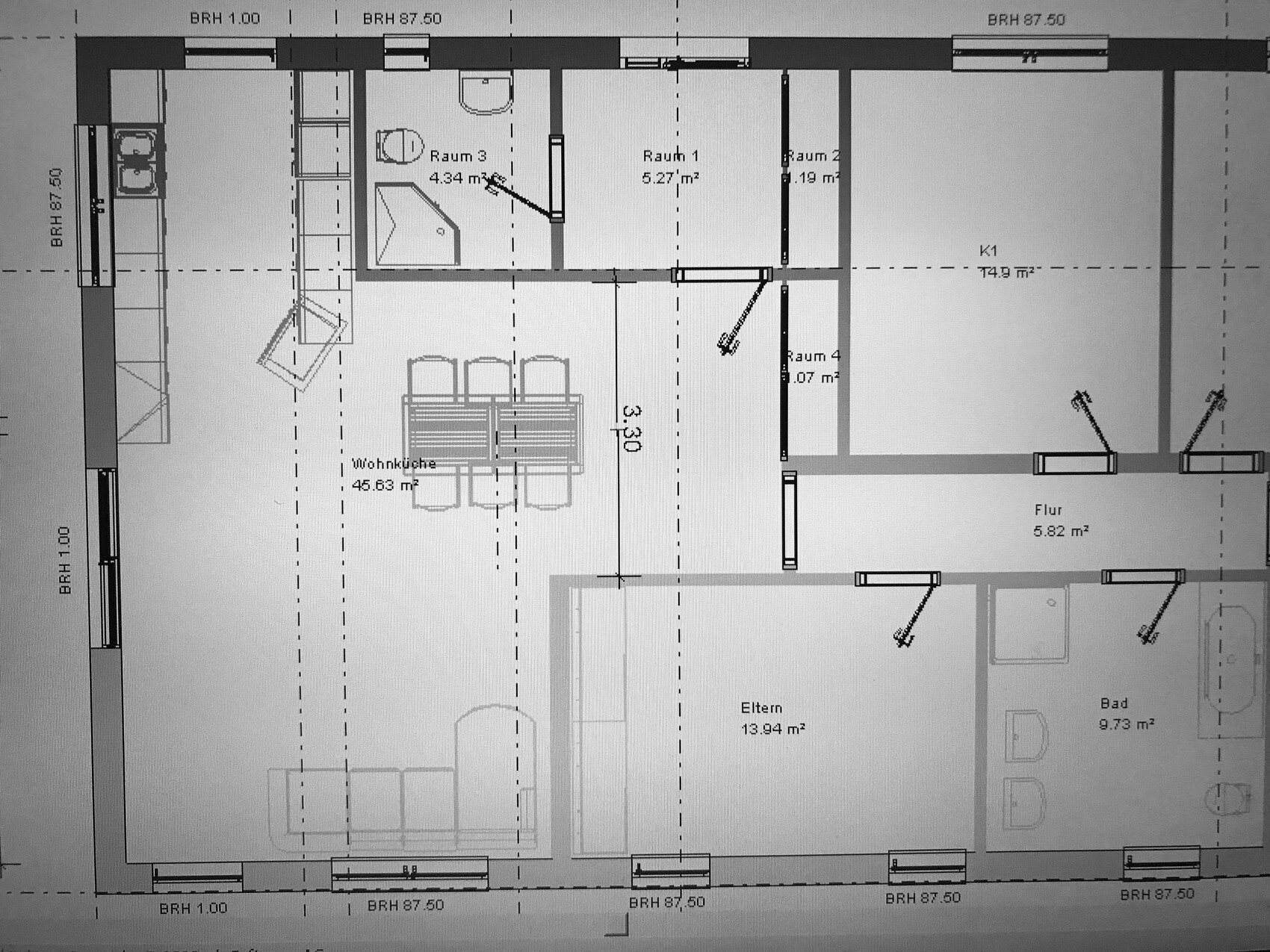 Als ich aufzählte, was noch so für Wünsche kommen, zb noch eine Kochinsel, da war das eigentlich ein Scherz. Im Eingangspost hast Du noch nicht einmal eine Küche eingezeichnet. Und ich habe geschrieben, dass mit solchen Wünschen, die nachträglich kommen, alles schlecht unter einen Hut zu bringen ist.