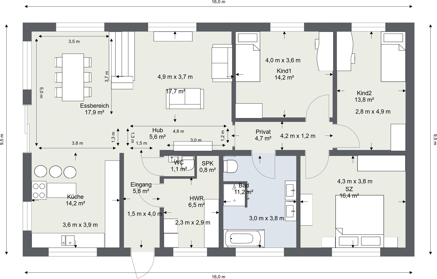 - ideale Größe aller Räume, Schlafzimmer mit 16m² für genügen Stauraum