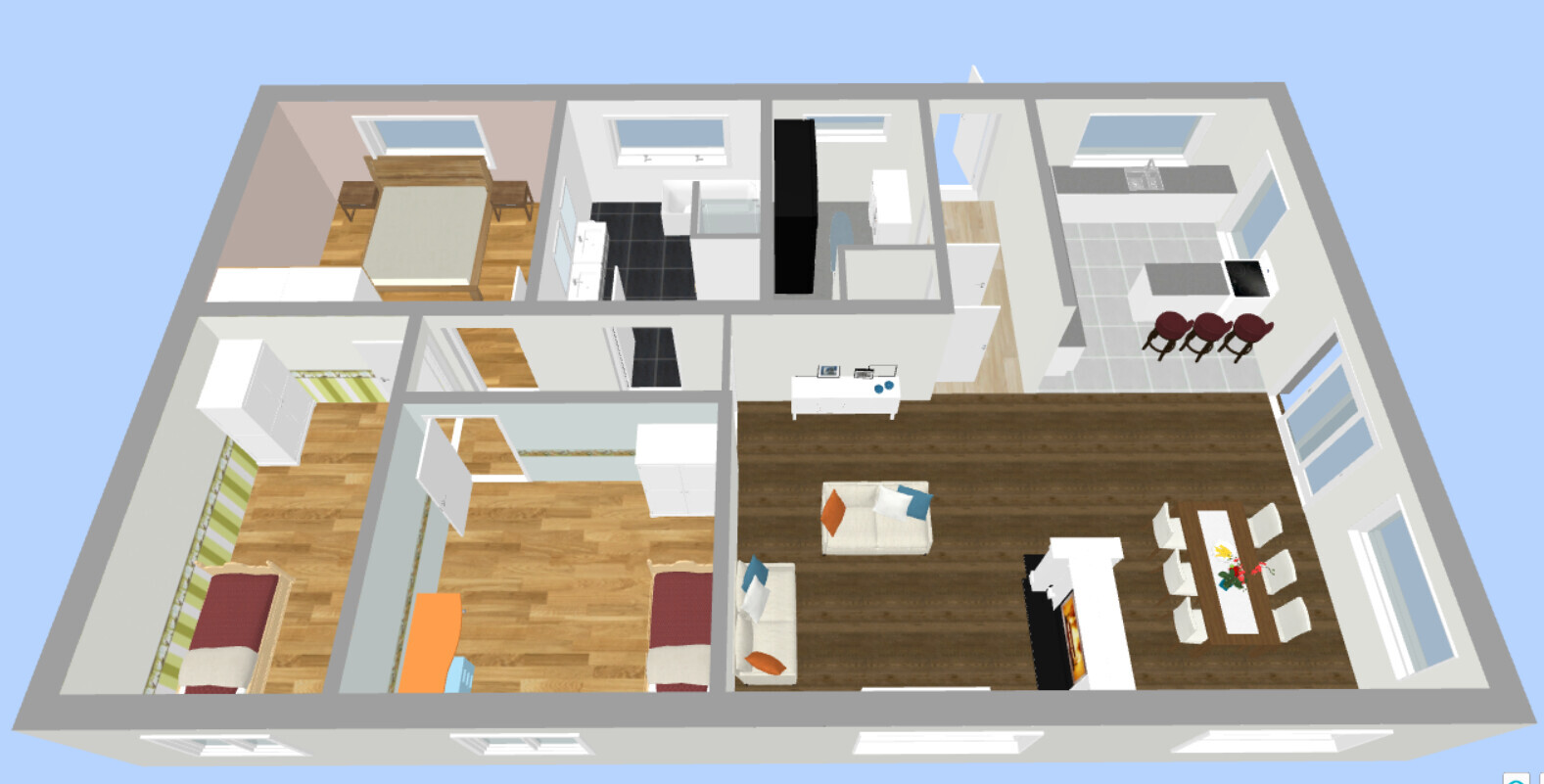 2D und 3D gleich orientiert wären übersichtlicher. Gut finde ich (sogar bei Zwillingen) unterschiedliche Kinderzimmer. Dein WC ist in die Tasche gelogen, Platzangst ist der entspannten Darmentleerung abträglich, selbst bei Fengshuilegasthenikern.