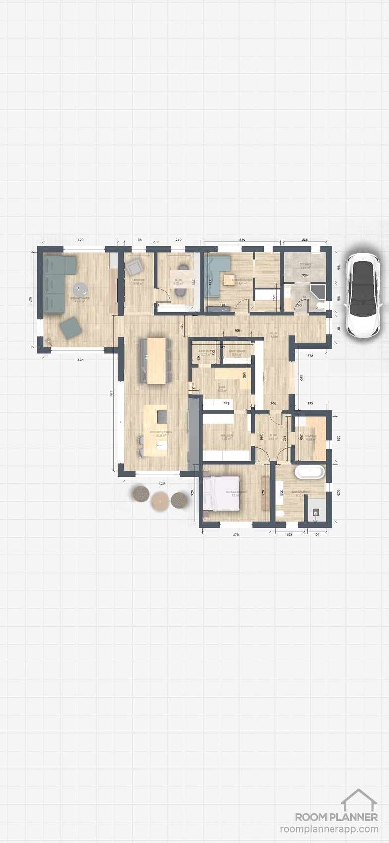 Ich bin auch nicht gut im Grundrisse basteln, aber hier passt für mich auch einiges nicht. Die Leseecke wirkt schmal und ungemütlich. Die vielen winzigen Räume in der Mitte, die Großteils als Stellplatz gedacht sind, aber nirgendwo passen Schränke hin? (Seh ich das richtig, dass der Hauswirtschaftsraum 4 Türen hat? Bin mir bezüglich der Darstellung nicht sicher. Schiebetüren und einmal durch nen Schrank?) Die Wände im Kinderzimmer versteh ich nicht. Warum den Kram nicht weg und Schrank an die Wand und Fläche zum Spielen? (Ist das zu einfach gedacht?) Passt da so überhaupt nen wirklicher Kleiderschrank hin? Wenn es "nur" um den Elternbereich geht, dann finde ich dort sonderbar, dass die Wäsche ein Fenster kriegt, die Ankleide aber nicht. Ansonsten hat der Hauswirtschaftsraum, wenn ich die Zeichnung dort richtig interpretier doch nen Durchgang auf die andere Seite, dann würde ich mir den Durchgang zur Ankleide sparen und sowohl in der Ankleide als auch im Hauswirtschaftsraum lieber mehr Abstellfläche mitnehmen... aber eigentlich gefällt mir da das ganze Konstrukt nicht, also uhm. Je nach Darstellung wirkt die Dusche ansonsten schwer betretbar, aber ob das an sich von den Maßen her nicht doch passt, weiß ich nicht....