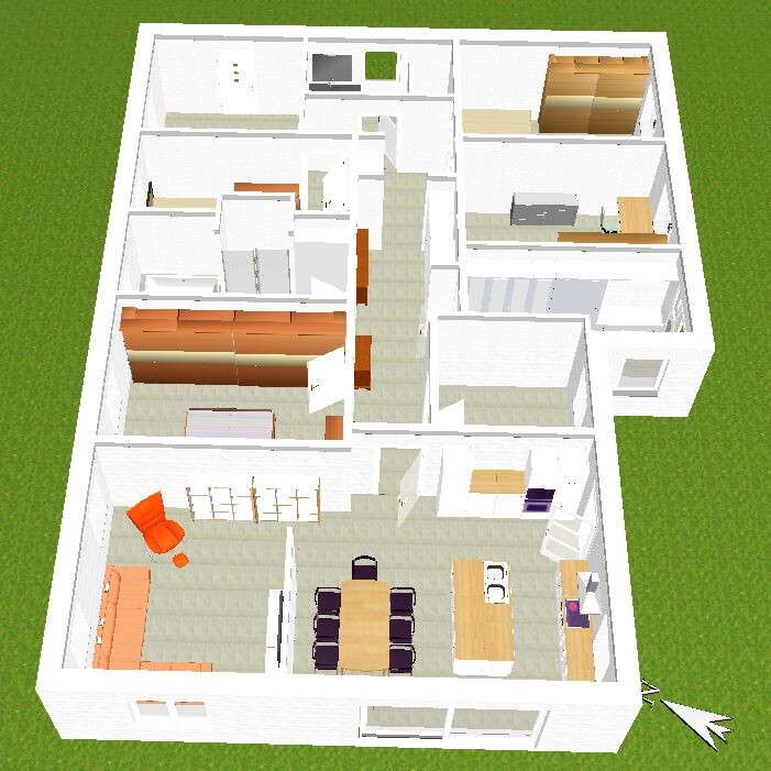 Das es kein Winkelbungalow mehr im klassischen Sinne ist, ist mir durchaus bewusst. Ist nicht so einfach die Fläche an Räumen unterzubringen, ihm sind einzelne Räume immer noch zu klein. Allerdings unnötig viel Verkehrsfläche wollte ich dann wieder nicht. Muss ja auch alles unterhalten werden.