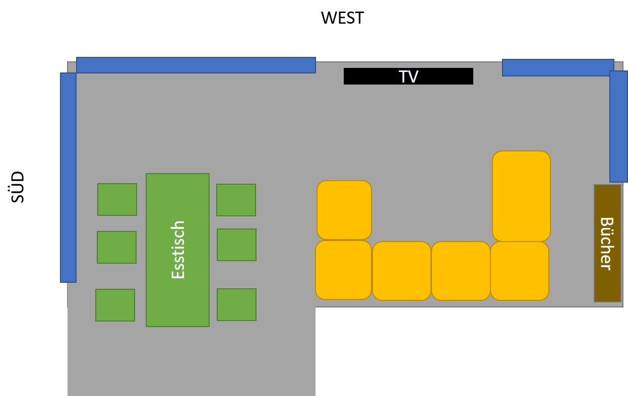 Mich würde mal interessieren, wie ihr das realisiert mit Couch, Glasfront und TV.Ungefähr so ... (ist jetzt nicht im Maßstab und überall genug Platz zum durchlaufen)
