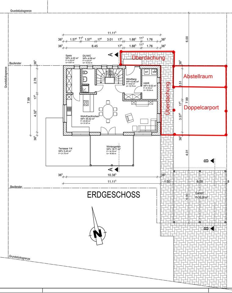 Ich hab mal zwei Bilder angehängt. Einmal mit Überdachung zum Haus (die teure Variante).