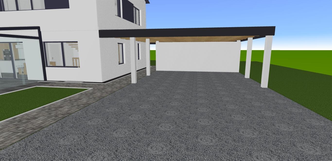 Oder doch einen Holz-Doppelcarport? Bin mir nicht sicher ob das zu dem Haus passt.
