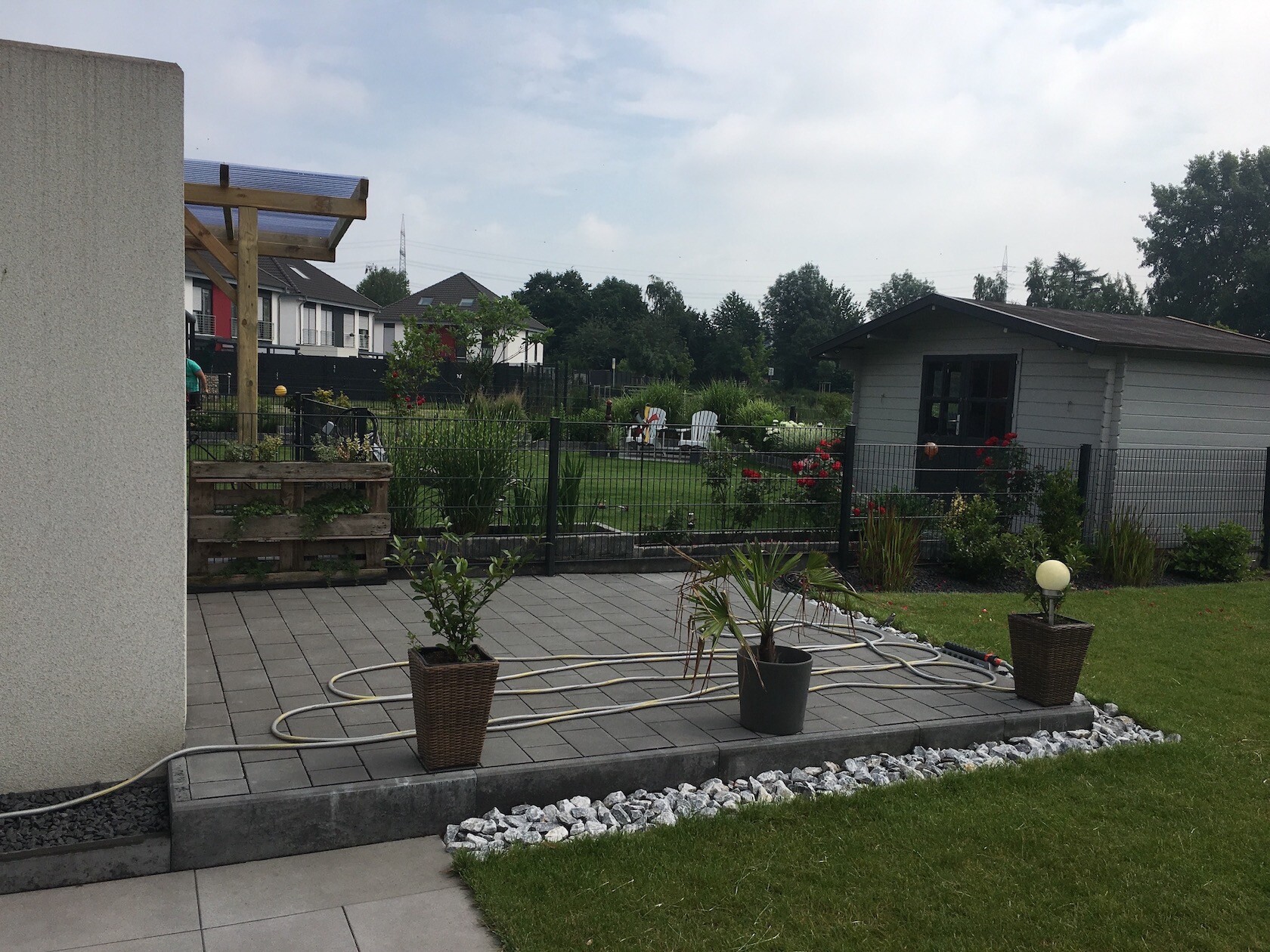 Vielleicht soll dort keine Sitzecke hin, sondern Rollo möchte es als Unterstand nutzen und nebenbei verhindern, dass bei Starkregen Wasser in die Garage drückt 😉Ja, so wird es sein 😉