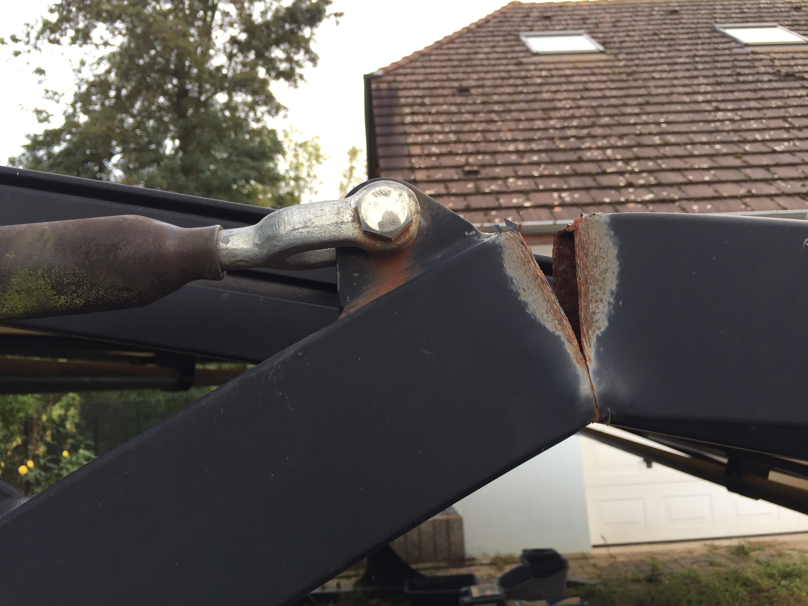 ich würde sagen, dass hier ein paar schraubbare Bleche sehr wenig bringen. Die Hohlprofile sind verzogen und sogar deren Schweißnaht aufgerissen. Die beiden geschwungenen Rohrprofile sind meiner Meinung nach tot, macht die Sache aber nicht unlösbar, um sie wieder Instand zu setzen.