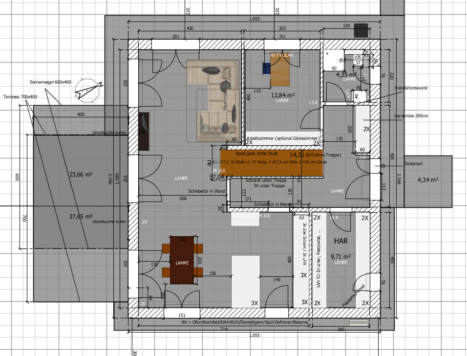 Irgendwie tendieren wir schon mehr zu der Lösung Couch an die Wand, TV zwischen die Fenster. Wir schauen auch nicht so viel TV und auch nicht tagsüber.