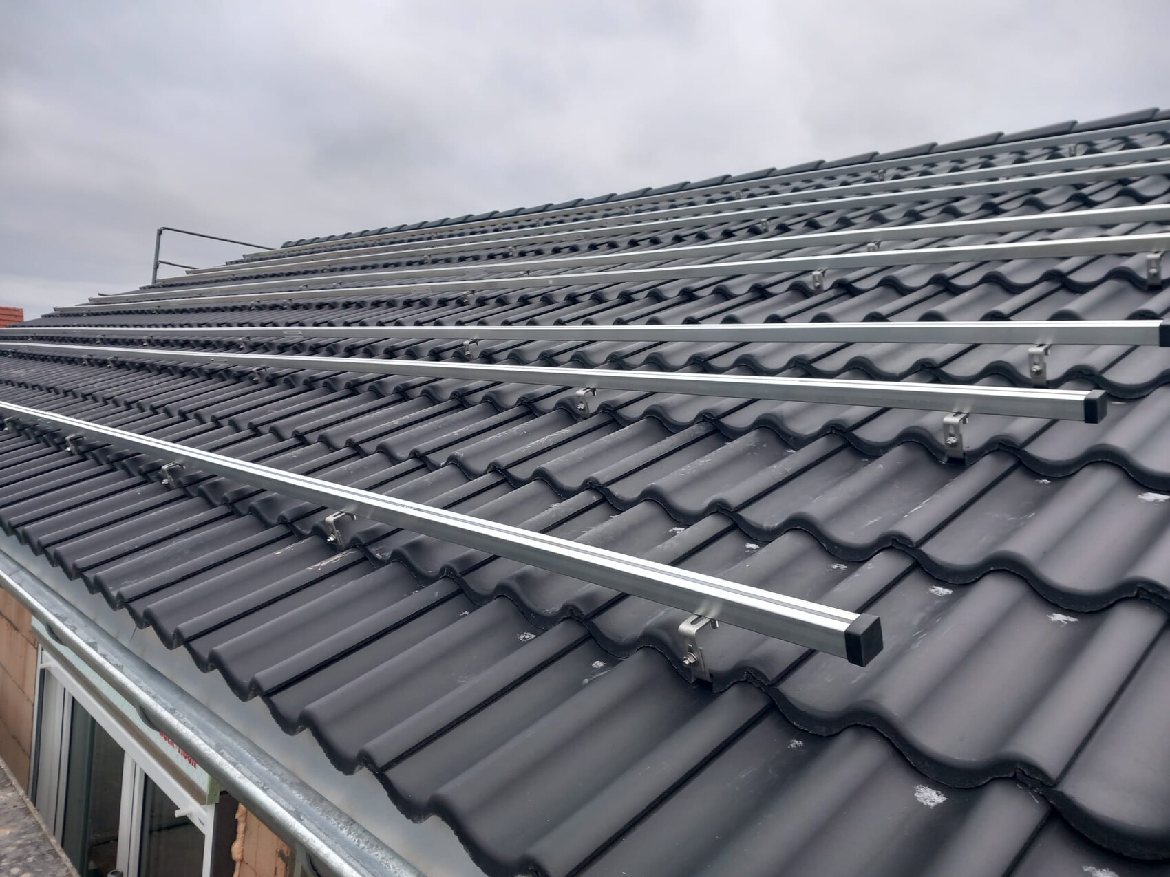 Die Photovoltaik Haken sind am Sparren. Dafür muss die Dachpfanne unterhalb ausgeklinkert werden. Da kommt kein Wasser durch, die Pfannen sind etwa 15cm überlappend.