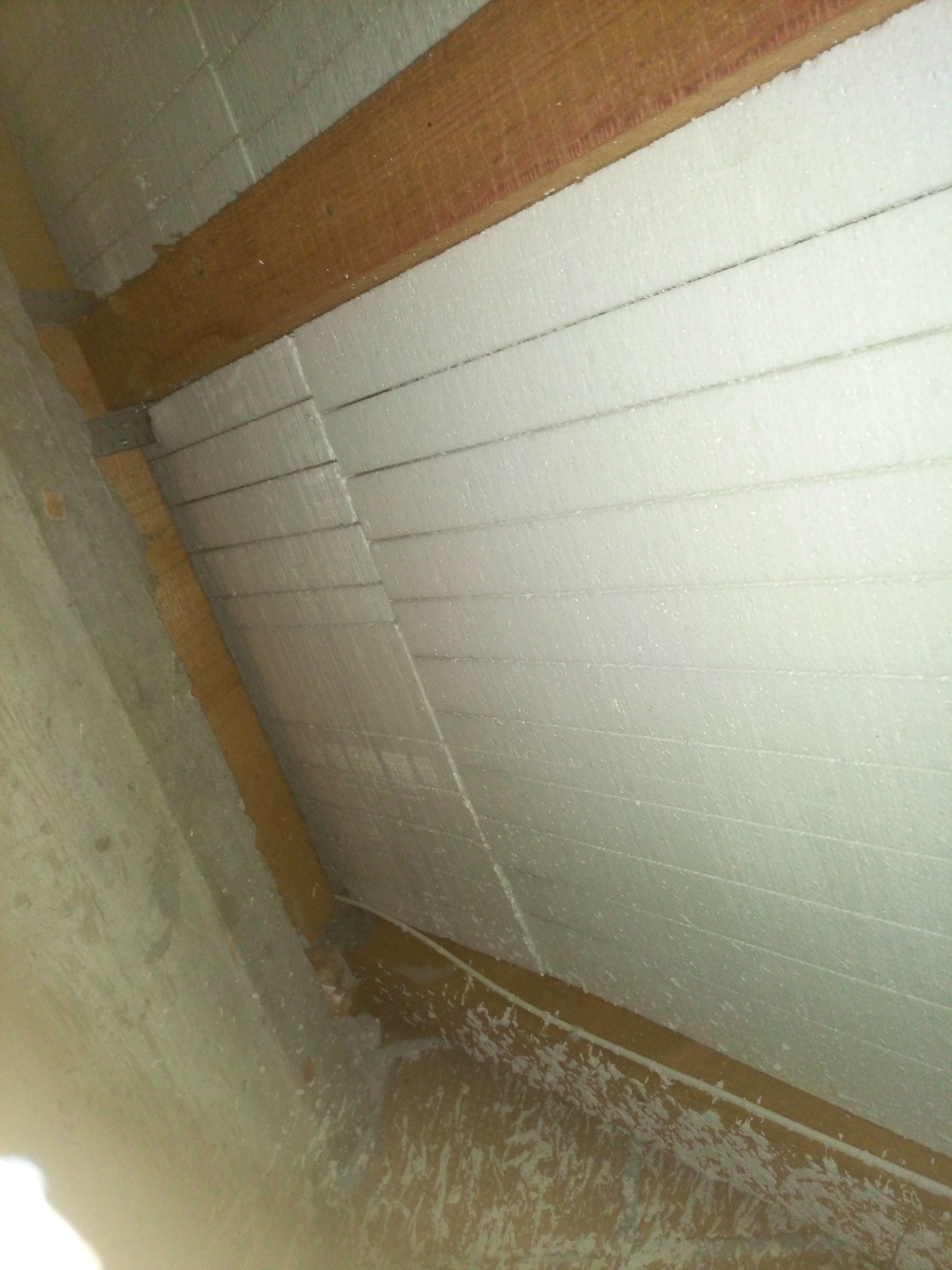 Rohbau-Wanddämmung aus Styroporplatten an einer unbehandelten Wand mit Baustellencharme